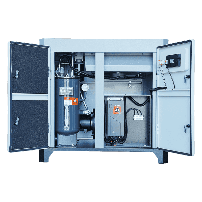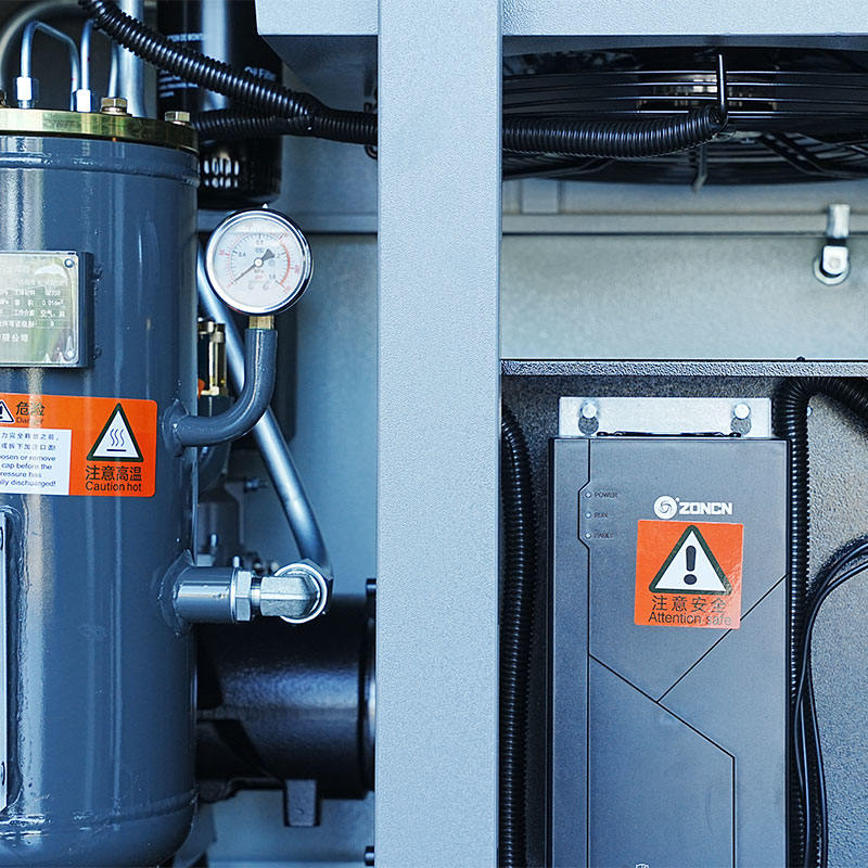 Regulácia s premenlivou frekvenciou umožňuje motoru dynamicky upravovať rýchlosť podľa potreby vzduchu v reálnom čase. Pre mikroolejový dvojskrutkový jednostupňový kompresor s výkonom 20 HP táto konfigurácia zvyšuje energetickú flexibilitu, pretože kompresor už nemusí pracovať pri konštantnom zaťažení. Namiesto toho frekvenčný menič určuje optimálnu rýchlosť motora potrebnú na uspokojenie potreby prúdenia vzduchu a zároveň znižuje zbytočnú spotrebu energie. Táto konfigurácia je obzvlášť výhodná v zariadeniach s kolísajúcimi výrobnými programami, rôznym zaťažením zariadení alebo prerušovanou spotrebou vzduchu. V spojení s olejom chladeným synchrónnym motorom s permanentným magnetom Zhejiang Haidebao Industrial Technology Co., Ltd., systém s premenlivou frekvenciou zaisťuje plynulé prechody otáčok a kontrolované teplotné správanie. Viacúrovňové riadenie hluku kompresora ďalej podporuje prevádzku s premenlivou frekvenciou tým, že zabraňuje náhlym zmenám zvuku počas nastavovania rýchlosti.